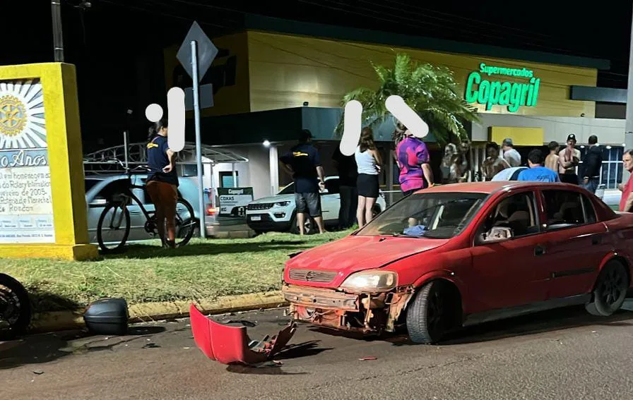 Moto fica presa embaixo de carro após forte batida em Marechal Rondon