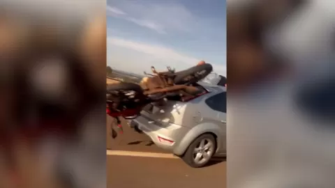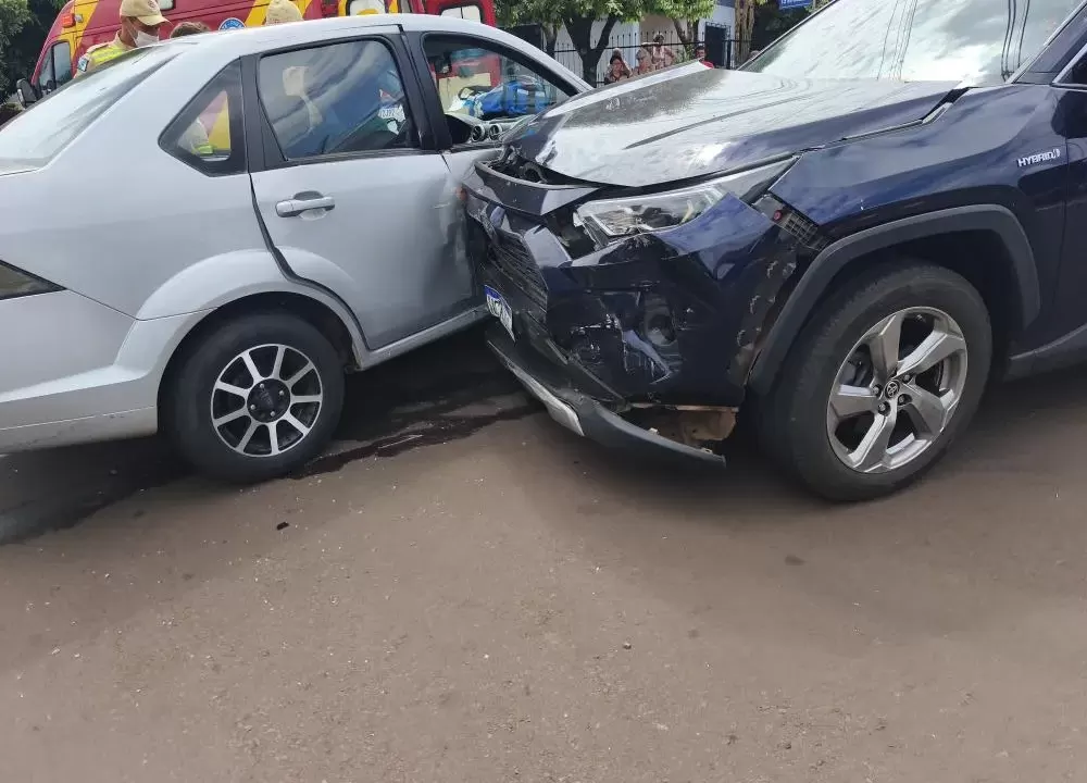 Moto para dentro de carro e condutor em cima de veículo em acidente na PR-445