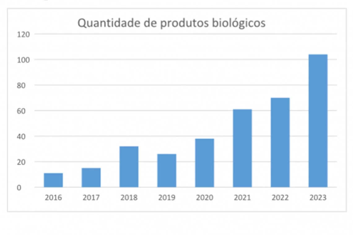 Além do aumento quantitativo, pode-se observar um crescimento na variedade de ingredientes ativos, sendo ferramentas de importância para agricultura, com destaque para produtos fitoquímicos, predadores e parasitoides.
