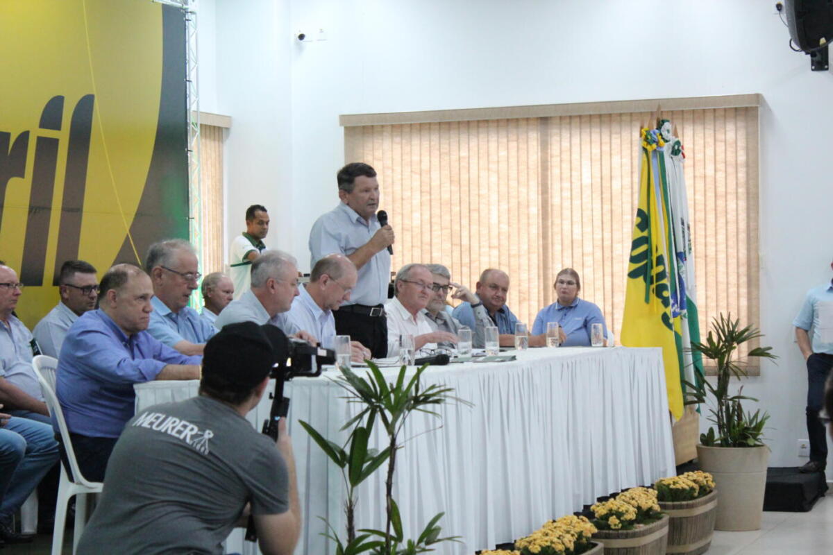 O ex-presidente da Copagril finalizou seu discurso emocionado e agradecendo o apoio que teve de todos durante o tempo em que ficou frente à cooperativa, lembrando que nada seria possível sem que Deus abençoasse o trabalho para o qual foi designado.