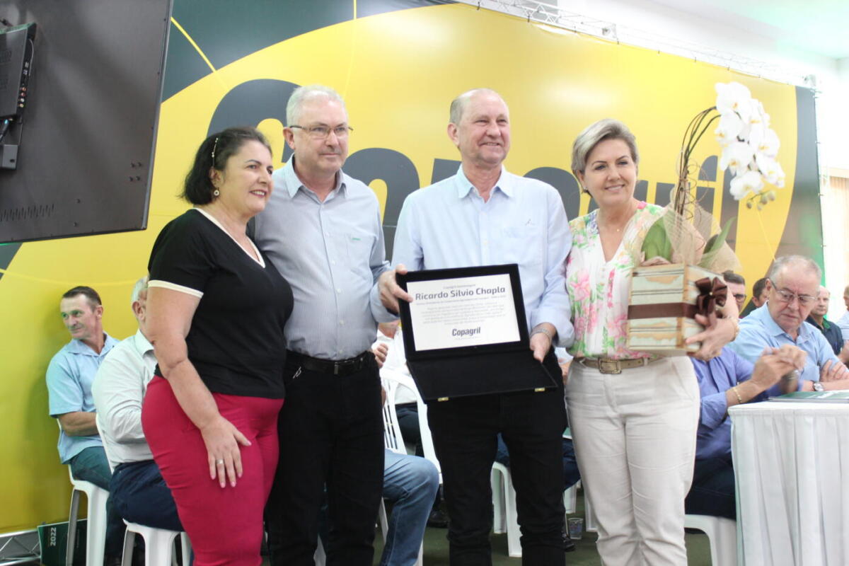 Em seu discurso ele fez questão de homenagear o ex-presidente com a apresentação de um vídeo que relatou e mostrou em fotos toda a trajetória de Chapla com o cooperativismo.