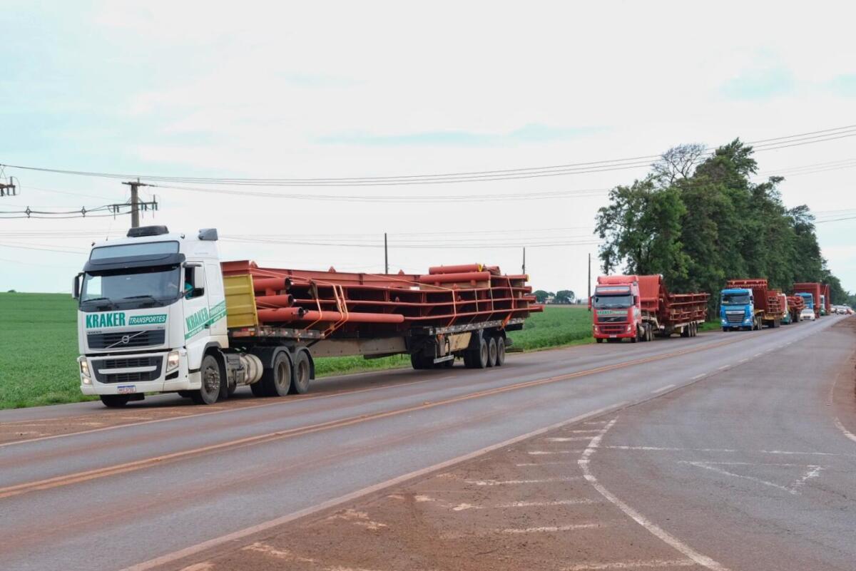 As peças mais leves do comboio pesam 26 toneladas e o equipamento mais pesado é um evaporador de 43 toneladas. Outra carreta veio de São Paulo. Com esse comboio, sobe para 11 o número de carretas com peças e equipamentos de grande porte que já chegaram à esmagadora. No total, a C.Vale vai receber 38 carretas com componentes da indústria na qual está investindo em torno de R$ 1 bilhão.