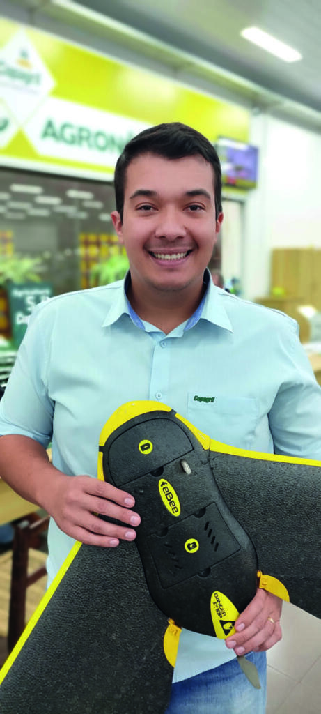 agrônomo Vinicius Tomimatsu Lemke. Ele está colocando em prática a agricultura 5.0 Copagril em sua lavoura na atual safra de verão. “É uma nova tecnologia que a Copagril está disponibilizando e como todas as novidades sou favorável. Por isso, estarei utilizando o monitoramento em parte das minhas áreas, para ver como o sistema funciona e a sua viabilidade”, declara o associado. “Meu equipamento de pulverização está preparado para receber as informações e fazer a aplicação localizada dos defensivos”, conta.