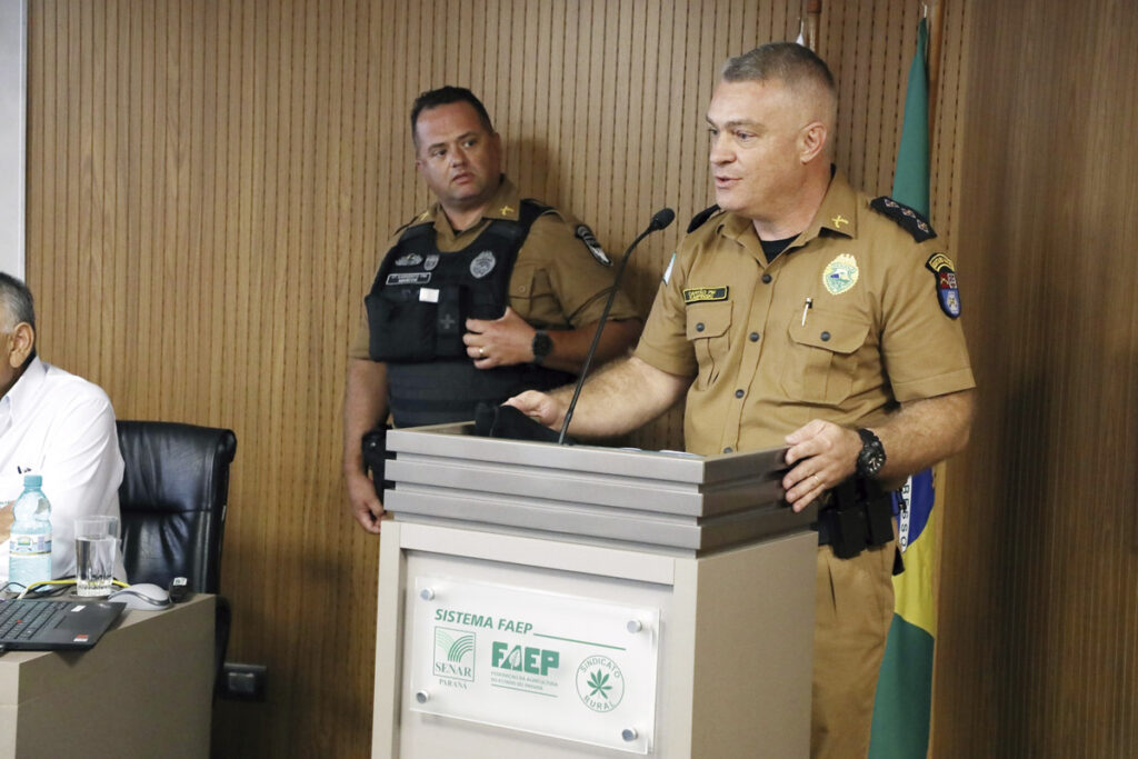 Sobre o Programa Patrulha Rural Comunitária, o capitão Marcelo Trevisan Karpinski e o sargento Marcos Paulo Nascimento, da Polícia Militar (PM) do Paraná, destacaram dados sobre a iniciativa, que conta com parceria dos sindicatos rurais e da FAEP há vários anos, principalmente por meio da produção da cartilha “Segurança Rural”.