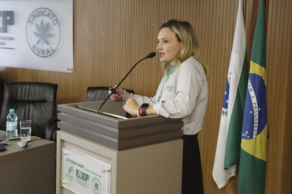 A diretora de ESG do Sistema FAEP/SENAR-PR, Fabiana Campos, apresentou as ações previstas para este ano, inclusive no aspecto de levar informações sobre o tema para dentro das propriedades rurais. Os planos da FAEP na área de ESG para esse ano envolvem as ações como cursos para presidentes, funcionários e parceiros de sindicatos rurais, cartilha sobre o tema, peças de comunicação e até dias de campo levando conhecimento sobre ESG aos produtores rurais.