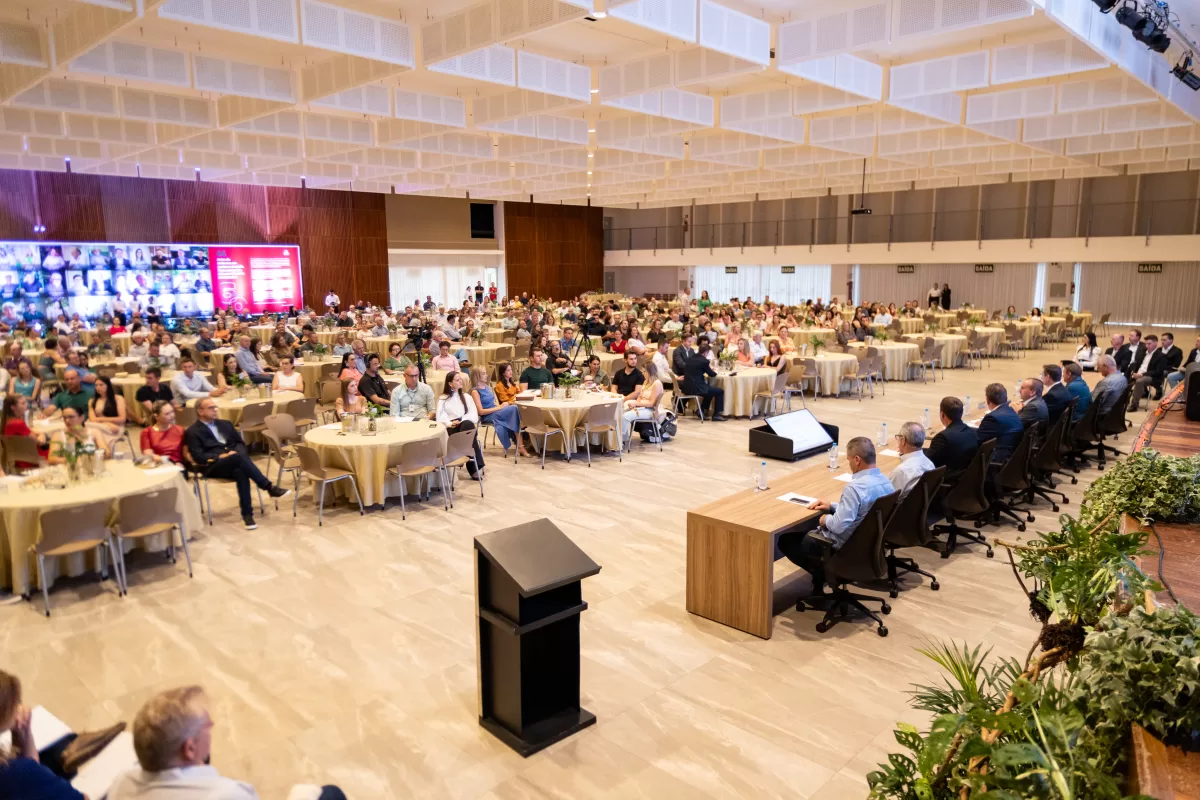 Na sequência, associados, funcionários, autoridades e demais convidados participaram da Assembleia Geral Extraordinária da Lar Cooperativa Agroindustrial e da Assembleia Geral Ordinária da Lar Credi, ambas realizadas no Lar Centro de Eventos. Em mais uma prática genuína do cooperativismo, foram conduzidas deliberações conjuntas com os associados, evidenciando a cultura de diálogo e participação da cooperativa.
