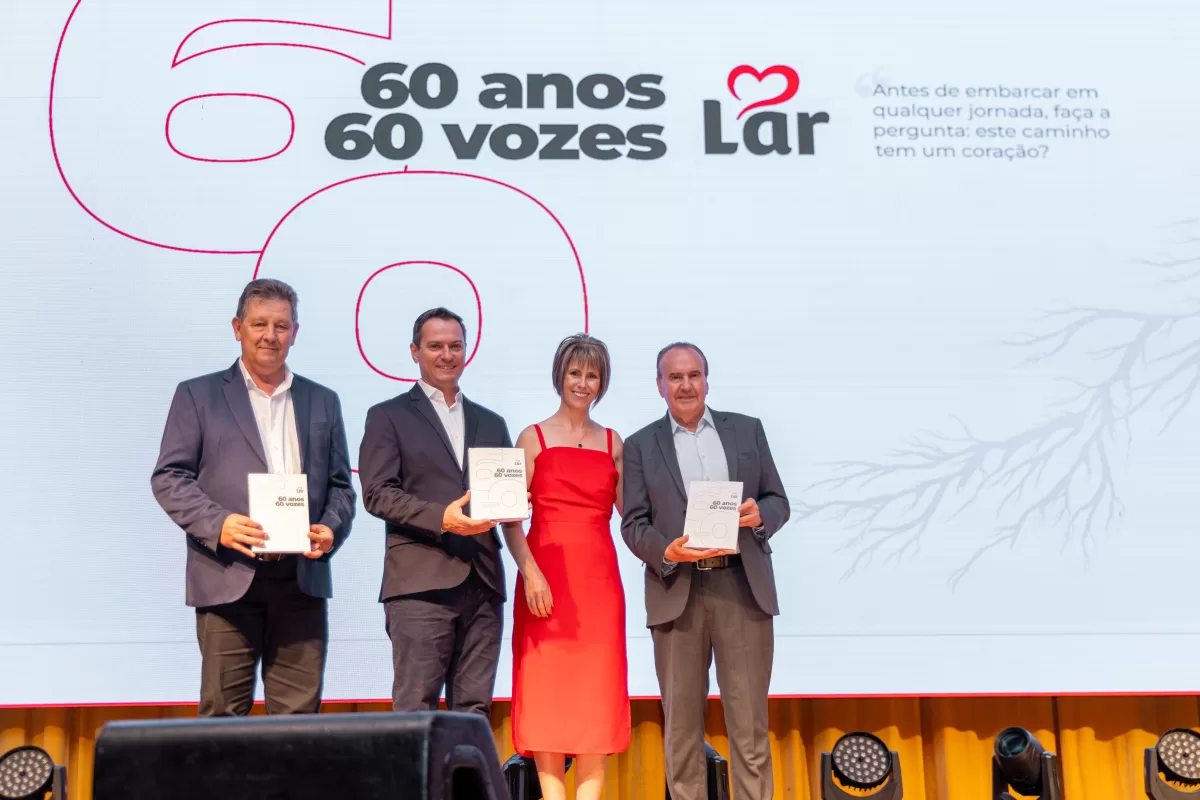O ponto alto das comemorações foi o lançamento do livro “60 anos, 60 vozes”, obra que eterniza a trajetória da Lar através de histórias reais de associados, funcionários e líderes que ajudaram a construir a cooperativa. A jornalista e autora Rejane Martins Pires destacou que “quem faz parte da família Lar vive genuinamente o seu propósito, um propósito único que a torna única e virtuosa: cooperar para melhorar a vida das pessoas. Se há algo mais admirável que isso, eu desconheço”. Após a entrega simbólica dos primeiros exemplares à diretoria, os convidados que participaram da obra receberam o livro em mãos, em um gesto de reconhecimento e gratidão.