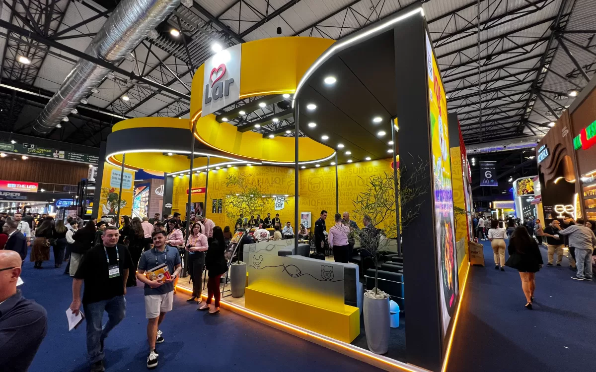 O estande da Lar Cooperativa na Exposuper 2025 teve como tema central a “acolhida com sabor e propósito”. O conceito visou expressar os valores da marca, destacando o cooperativismo, a qualidade e a proximidade com o consumidor. Para isso, o espaço integrou arquitetura funcional, tecnologia, design limpo e comunicação sensorial.