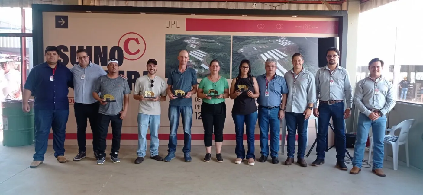 Na tarde desta quinta-feira (8), no Pavilhão da Pecuária do Show Rural, os destaques da suinocultura integrados à Coopavel foram homenageados em uma cerimônia especial. Pelo quarto ano consecutivo, o setor de Fomento de Suínos da cooperativa reconhece o trabalho e talento dos cinco melhores criadores, entre os mais de 130 produtores integrados. Todos os premiados receberam um troféu e outros prêmios.