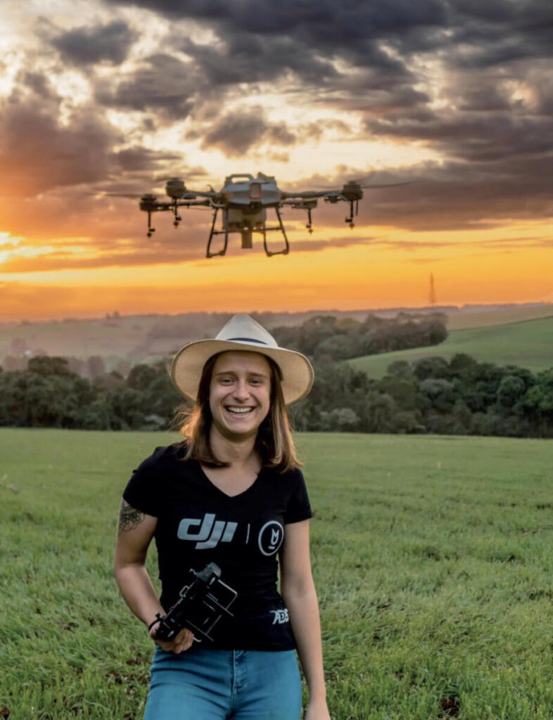 Ela convive com este “estranhamento” desde 2020 quando graduou-se na Unioeste e tornou-se a primeira brasileira piloto e instrutora de drone adaptado para ações no agro e passou a incorporar a equipe da Agridrones Solutions (ADS), empresa líder no segmento.