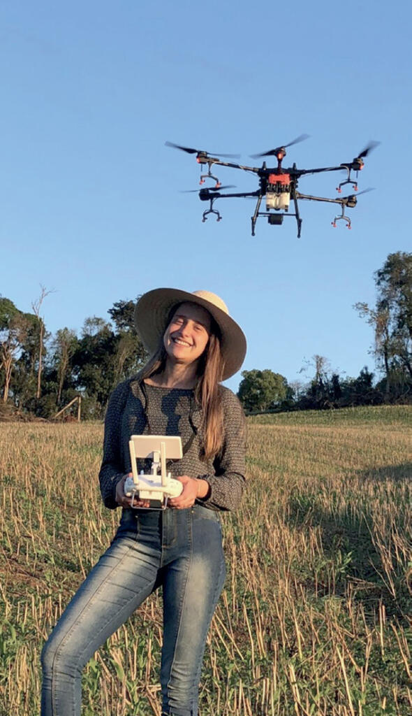 Mas vivemos em outra era e o tal OVNI seria rapidamente identificado como um drone para aplicação de defensivos agrícolas. O que continua diferente nesta cena é o gênero da operadora. A jovem é Isabella Junges Rosa, engenheira agrônoma cascavelense radicada em Joinville.