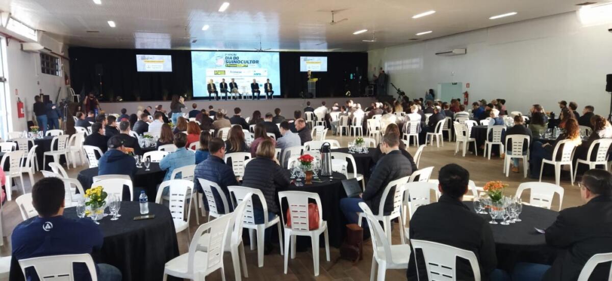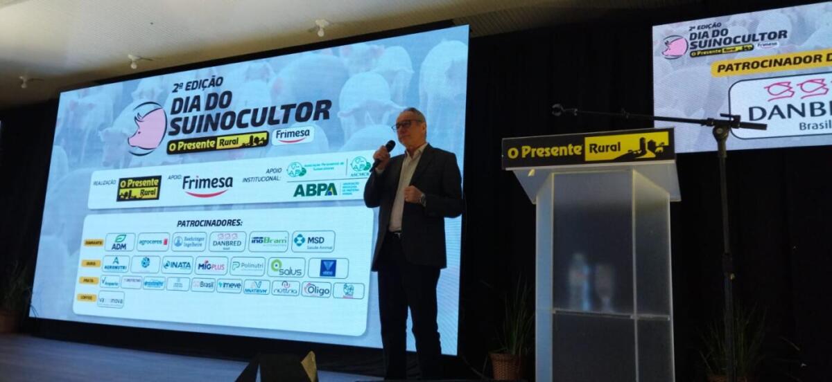 “Fazer do melhoramento genético e da evolução e uso da tecnologia, aliados para nosso conforto. Assim, nos preparar cada dia melhor para atender as demandas que o Brasil e o mundo vão exigir. Vamos fazer deste modesto evento uma oportunidade para aprender. Vamos debater ideias sobre o futuro da suinocultura para melhorar nosso ambiente de produção e de negócios. Vamos debater os temas importantes que envolvem a produção, para ter ideias mais claras e convicção sobre o que queremos para o futuro. Qual é a nossa responsabilidade nesse processo contínuo de melhorias que tanto desejamos? Se cada setor melhorar um pouco podemos crescer com qualidade e quantidade”, detalhou.