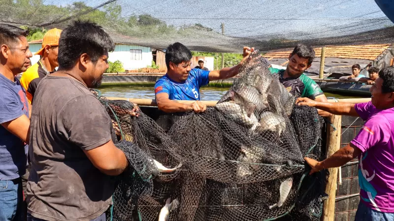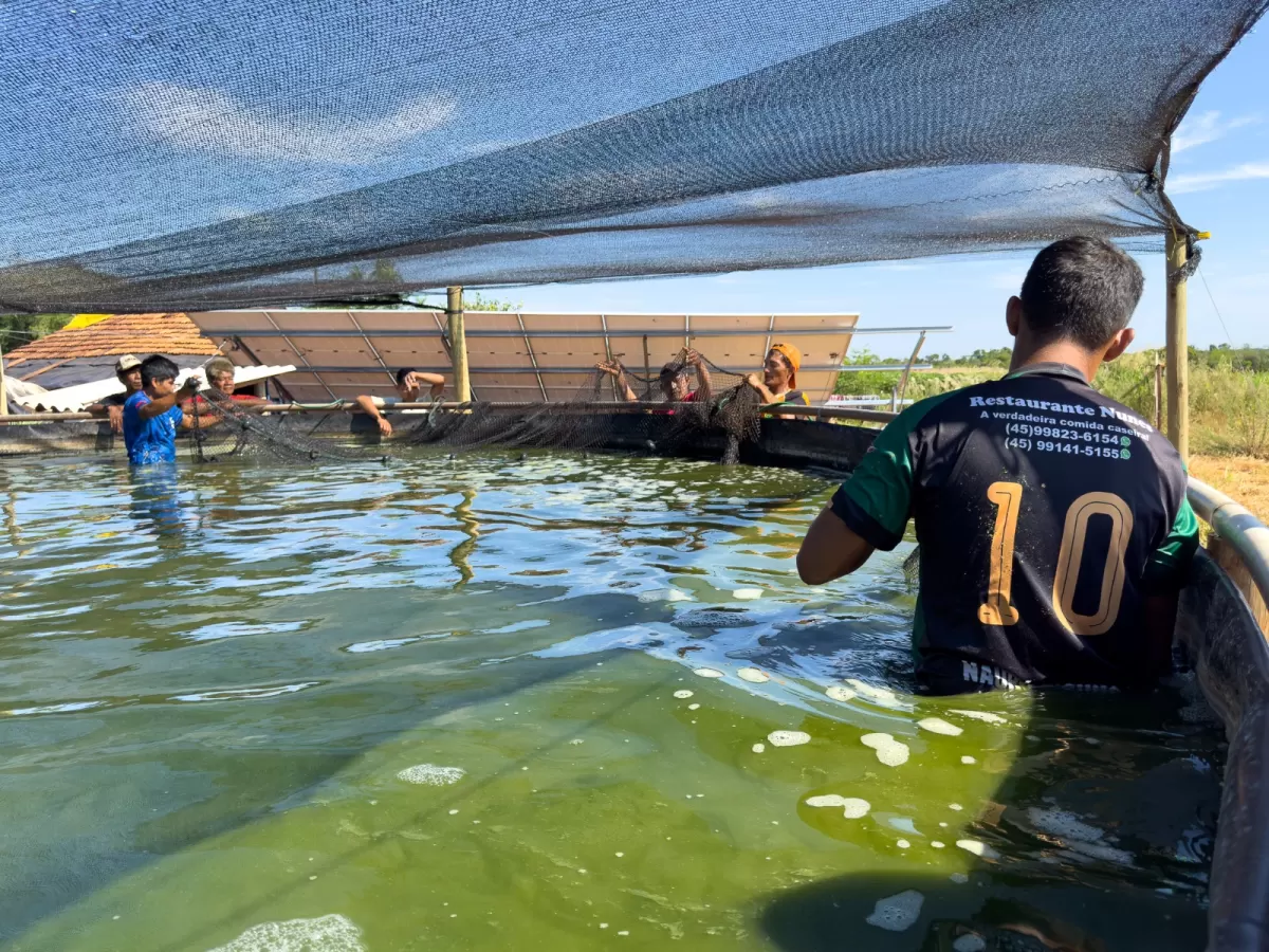A comunidade indígena Avá Guarani da aldeia Aty Mirĩ, em Itaipulândia, realizou na última quarta-feira (28) uma atividade de manejo sustentável da piscicultura comunitária, com a despesca parcial de peixes criados em tanques elevados instalados no próprio território.