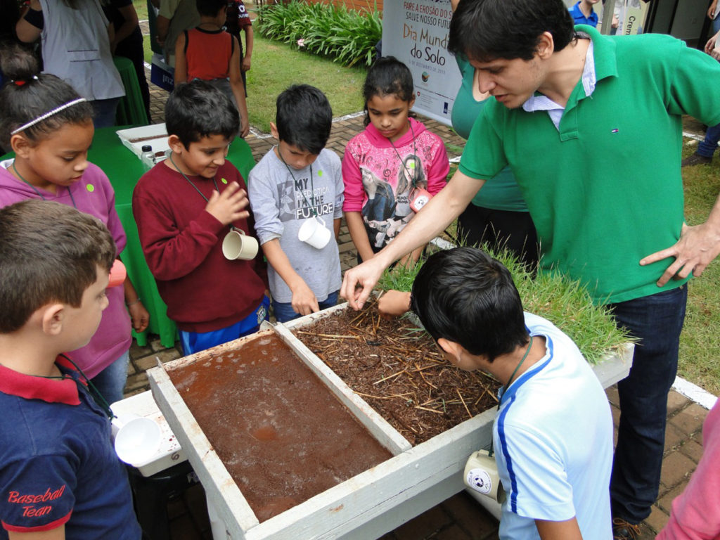 Os alunos da pós-graduação transmitem os conhecimentos sobre solo para os alunos da educação básica. “Os alunos participam de atividades didáticas (oito estações temáticas) onde conhecem como o solo é formado, algumas de suas características, sua importância na produção de alimentos e técnicas para sua conservação. Assistem a vídeos sobre solos e participam de visitas guiadas”, explica a pesquisadora Maristela.
