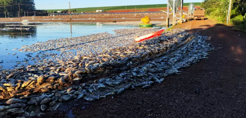 Paulo Michelon, produtor de tilápias em Tupãssi, no oeste do Paraná, perdeu cerca de 900 mil kg de peixe após queda e oscilações no fornecimento de energia elétrica. Ele estima prejuízo de aproximadamente R$ 9 milhões, já que os animais estavam prontos para o abate.