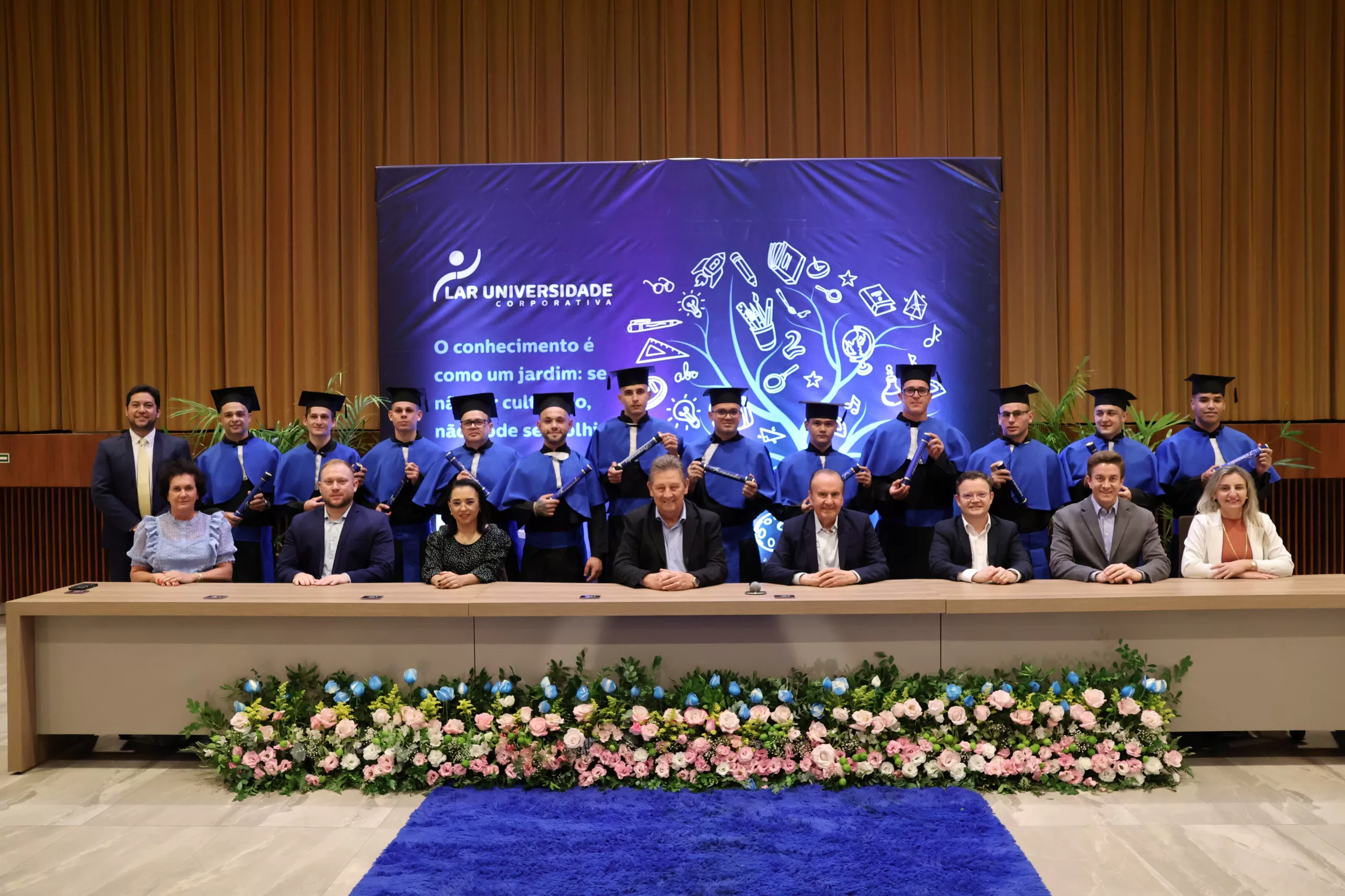 O momento, símbolo de desenvolvimento pessoal e profissional, representa uma importante conquista na carreira dos funcionários e inaugura uma nova fase repleta de oportunidades. Como de costume, para celebrar a formação, a Lar Cooperativa promoveu três cerimônias de formatura que contaram com a presença dos familiares dos formandos. Realizada entre os dias 11 e 17 de julho, em Cascavel e Medianeira, na região Oeste do Paraná, e em Rolândia, no Norte do estado, as celebrações foram marcadas por muita emoção e orgulho.