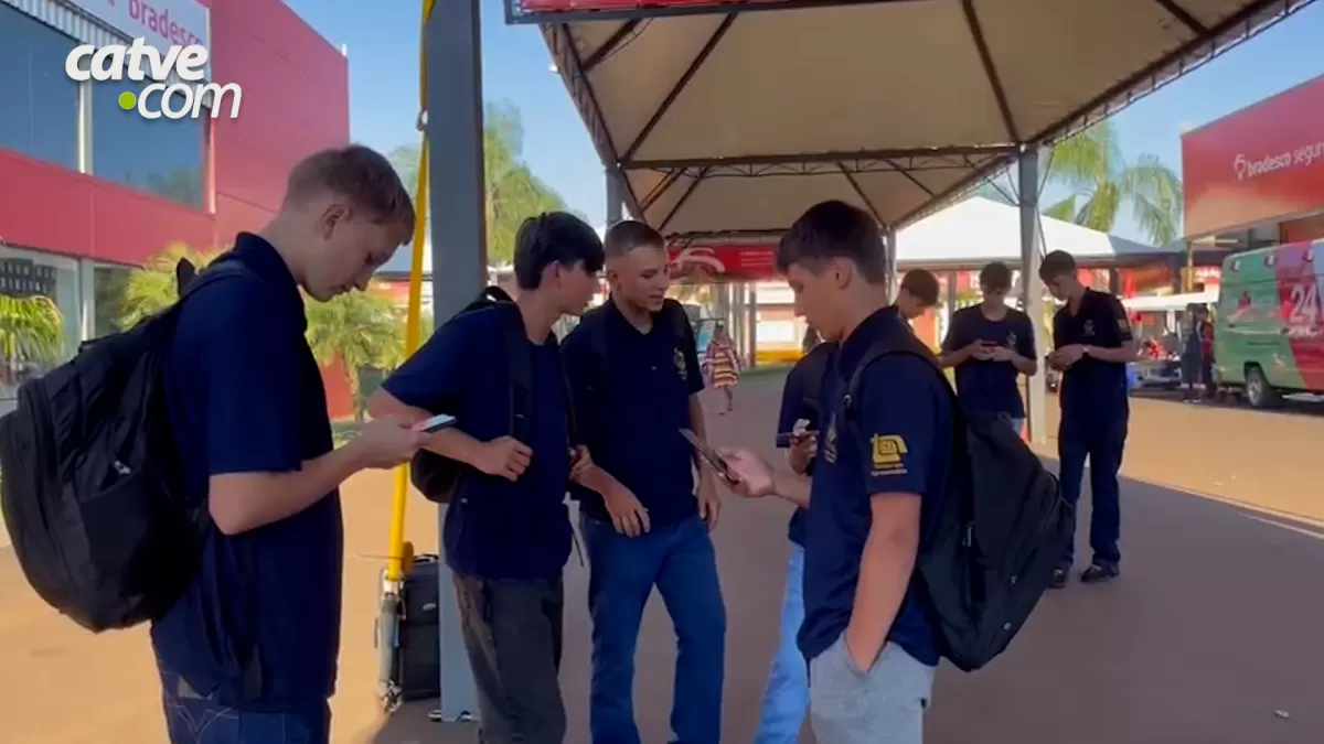 Comitiva com 36 alunos e quatro professores da Escola Agrícola de Cruz Machado, localizada no Sudeste do Paraná, viajou cerca de 339 quilômetros para participar deste primeiro dia de evento. Eles saíram por volta das 23 horas de domingo (8) em direção ao Oeste para participar da feira.