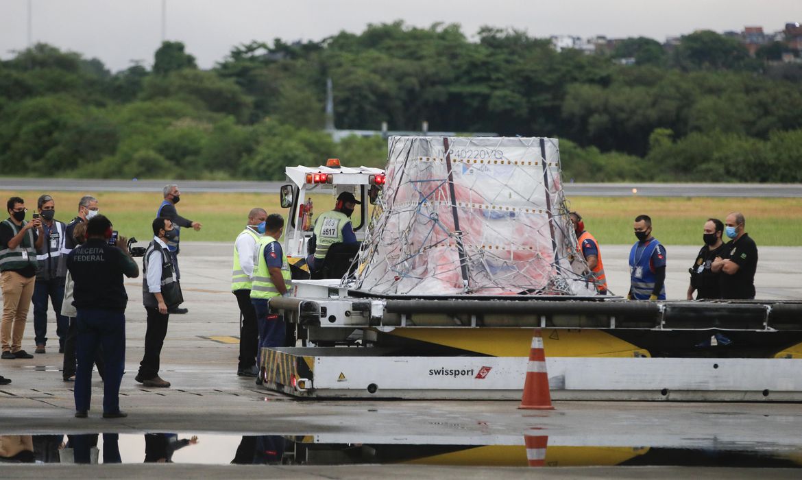 O lote saiu de Xangai, na China, na manhã de ontem (5). Depois de uma escala em Luxemburgo, o avião com o material chegou às 18h17 ao terminal de cargas do Aeroporto Internacional Tom Jobim-RIOGaleão, na zona norte da cidade.
