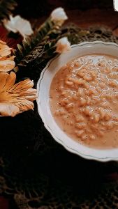Deixe o arroz de molho na água com os sachês de chá, a canela e cravo, por mais ou menos uma hora. Cozinhe o arroz na água do molho com açúcar, em fogo baixo. Quando a água secar, acrescente o leite integral. Deixe cozinhar até secar novamente. Acrescente a manteiga e sirva.