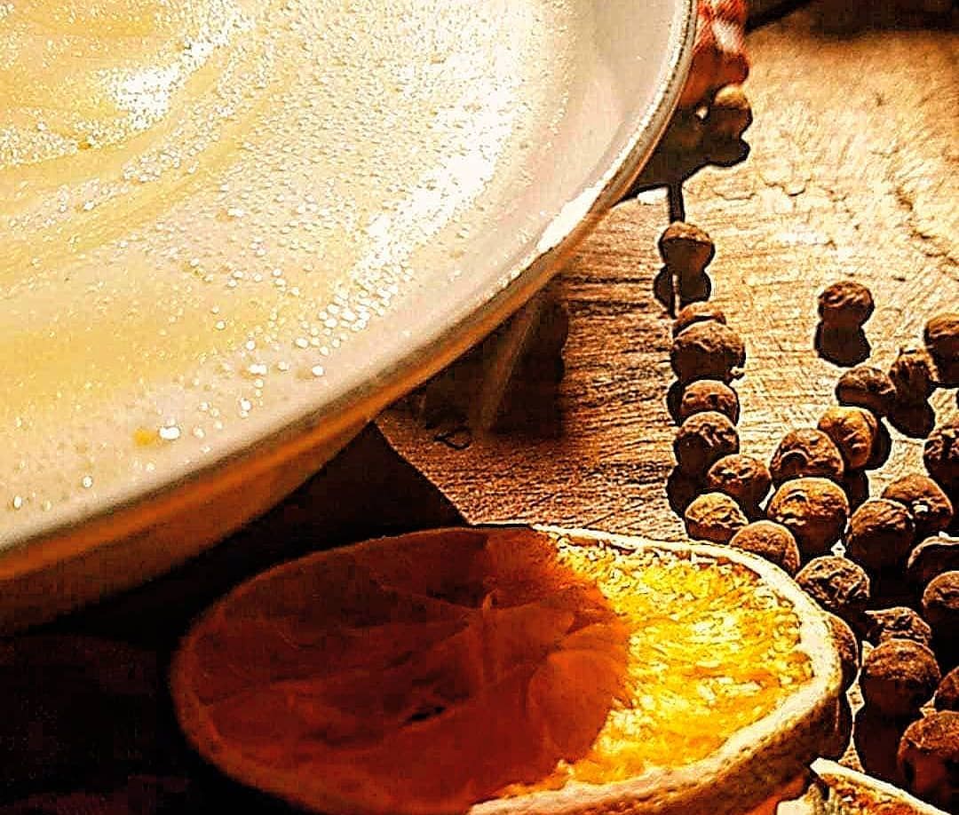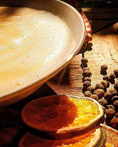 Verta um pouco de leite para uma tigela, junte a maisena e dissolva bem para não ganhar grumos. Reserve. Numa tigela à parte disponha o açúcar e as gemas e bata bem. Leve ao fogo uma panela com o restante do leite, junte a casca de laranja e as bagas de zimbro e deixe ferver. Junte, aos poucos, o preparado das gemas e mexa energeticamente. Adicione a maisena e mexa bem. Retire a casca da laranja e o zimbro e deixe engrossar. Retire, verta para tacinhas e sirva decorado a gosto.