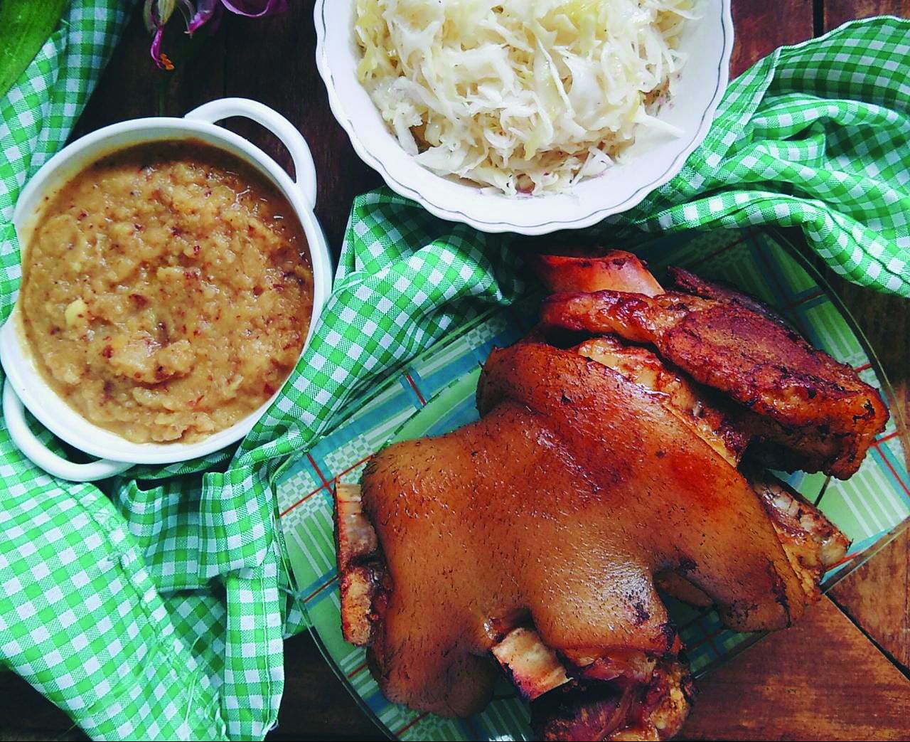 Em uma panela de pressão, coloque os joelhos, cubra-os com água e adicione a folha de louro, o alecrim, a canela em pau, a noz-moscada, o sal e a pimenta do reino. Cozinhe por uma hora. Escorra os joelhos, coloque em uma forma, besunte com a mistura de molho de soja e mel e leve ao forno (200ºC) por 15 minutos.