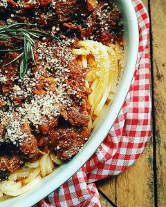 Linguine com ragu de músculo