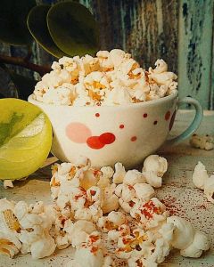 Numa panela grande coloque o óleo, a manteiga e o milho de pipoca. Misture, tampe e leve ao fogo médio para estourar. Mexa a panela de vez em quando, segurando no cabo e na tampa fechada – assim os grãos estouram por igual e não queimam. Desligue o fogo quando o intervalo entre um estouro e outro for maior que dois segundos. Transfira a pipoca para uma tigela. Salpique com a páprica, tempere com sal e misture bem. Sirva a seguir.