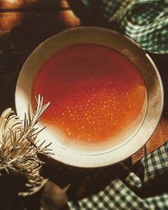 OBS: depois de esfriar, as bolinhas de sagu podem ficar concentradas no fundo da tigela. Se isso acontecer, retire da geladeira alguns minutos antes de servir e mexa bem com uma colher para redistribuir as bolinhas no caldo.