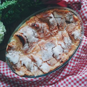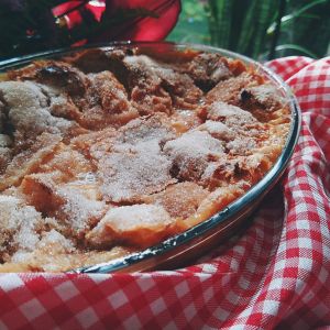 Em uma forma coloque os pães fatiados. Reserve. Bata no liquidificador o leite, os ovos e o açúcar. Despeje em cima dos pães e polvilhe a canela com açúcar cristal. Leve ao forno médio por 30 minutos.
