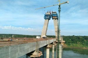 As obras da Ponte da Integração entre Brasil e Paraguai, que vai conectar Foz do Iguaçu a Presidente Franco, alcançaram 63% de execução neste mês de junho. Os investimentos na construção já são de R$ 148 milhões, do total previsto de R$ 323 milhões. A nova ponte internacional sobre o Rio Paraná é uma obra do governo federal, com gestão do governo do Estado (por meio do DER-PR) e recursos da margem brasileira de Itaipu Binacional. As obras estão dentro do cronograma e a expectativa é que a nova ponte internacional esteja concluída em meados do ano que vem.
