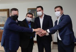 O deputado estadual Tião Medeiros participou da reunião de prefeitos representantes da Associação dos Municípios do Noroeste do Paraná (Amunpar) com o chefe da Casa Civil, Guto Silva e outros representantes do Governo Estadual. Para o presidente da Amunpar, o prefeito de Terra Rica, Júlio Leite, o deputado Tião é o legítimo representante da região Noroeste. “Ele é uma pessoa que vive a realidade, o dia a dia, e tem sido nossa base de apoio”, disse.