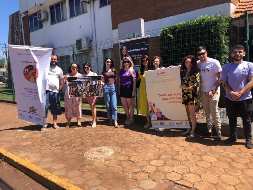 Ademais, no dia 06 de dezembro, a equipe do Núcleo realizou uma panfletagem na Universidade Estadual do Oeste do Paraná (Unioeste), pela manhã, antes do início das aulas. O intuito dessa atividade foi levar informações sobre o Numape à comunidade acadêmica, além de conscientizar ainda mais essa parcela da população pelo fim da violência doméstica e familiar contra as mulheres.