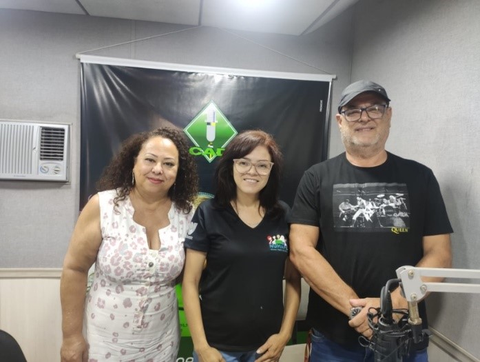 Posteriormente, no dia 08 de dezembro, a equipe do Numape/Marechal, representada pela orientadora Ivonete Pereira e pela pedagoga Edna Vaz Battistella, participou de uma fala na Rádio Difusora, no programa intitulado “As quentinhas da Difusora”, apresentado por Sabrina Viviane e Maiko Bucker. No evento em questão, a equipe reforçou sobre a conscientização pelo fim da violência contra as mulheres, bem como procurou evidenciar que nenhuma mulher precisa suportar uma situação de violência, pois a Lei Maria da Penha existe para proteger todas as mulheres de qualquer um dos cinco tipos de violência, quais sejam, violência física, moral, psicológica, sexual e patrimonial. A equipe do Núcleo agradece pelo espaço e pelo tempo disponibilizado para falarmos desse assunto tão atual e necessário.