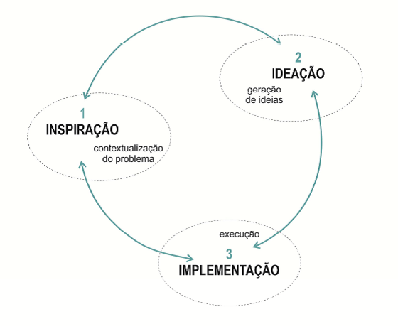 Com base nesses critérios definidos inicia-se, então, a utilização da metodologia que possui basicamente três etapas: processo de inspiração, ideação e implementação dentro de equipes multidisciplinares.