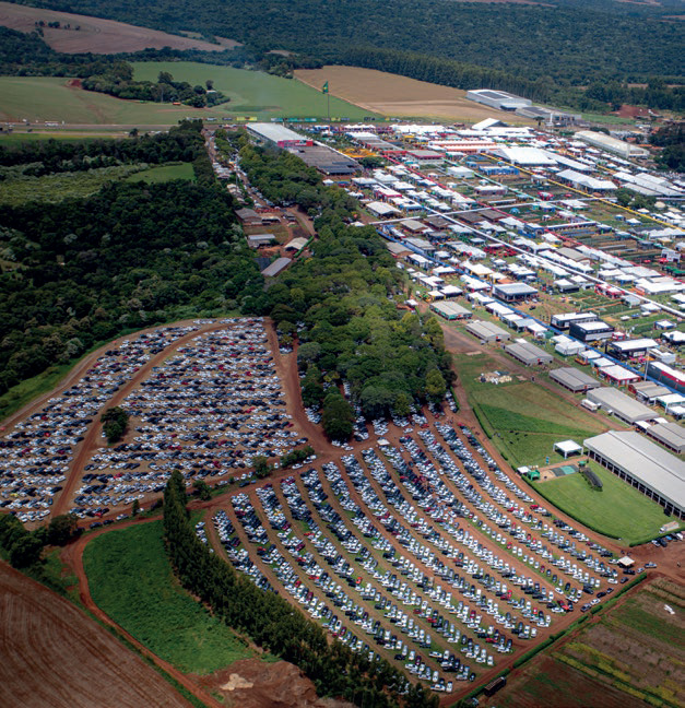Nos dias de pico do Show Rural, entre terça-feira e quinta-feira, nem mesmo a rodovia e o Trevo Cataratas ampliados conseguiram dar conta de tanto movimento. O estacionamento da feira, também ampliado para 17 mil vagas, ficou pela primeira vez completamente lotado, como mostram as fotos aéreas.