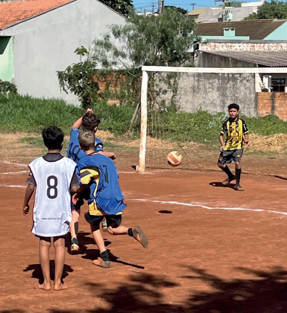 A foto captei em agosto último. Transitava ali pelo bairro Coqueiral, onde vivi parte da infância e juventude, quando vi a gurizada correndo atrás da bola no campinho de chão batido.