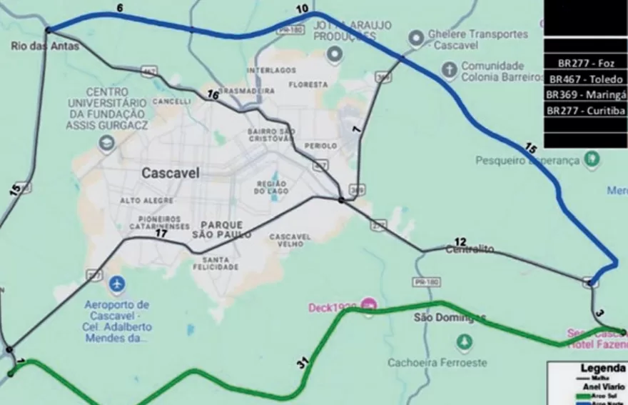 Mas há quem defenda priorizar o arco Sul, rodovia que sairia do acesso para Curitiba da 277, contornando a região Sul da cidade nas “costas” de bairros como Presidente, Nova