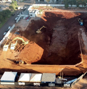 O maior prédio de Cascavel prepara suas contenções para suportar os 41 andares da torre corporativa que terá uma irmã residencial com três andares a menos na região do Centro Cívico.
