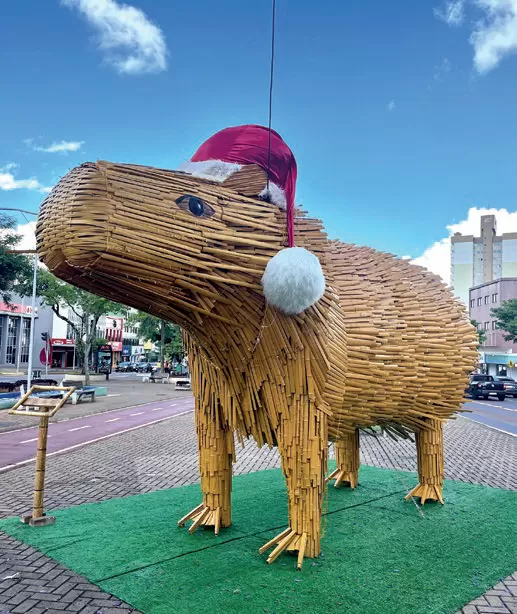 Mas nenhuma delas consegue monopolizar mais olhares e atrair mais fotógrafos que a capivara gigante de bambu reintroduzida agora no Calçadão como “enfeite de Natal”. Qual o mistério do carisma da capi? A pergunta foi remetida para inteligêcia artificial. E a resposta foi esta: