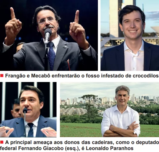 Neste contexto, nomes como Henrique Mecabô e Hermes Parcianello (que cogita retornar) encontrarão os acessos para o Congresso Nacional blindados mcomo os castelos medievais de muralhas indevassáveis e fossos infestados de crocodilos – local pouco indicado para frango mergulhar. Como em rio que tem piranha jacaré nada de costas, talvez a maior ameaça às cadeiras já distribuídas na bancada do Paraná no Congresso venha de Cascavel: o nome do destemido nadador é Leonaldo Paranhos da Silva, caso abdique de um mandato na Assembleia do Paraná.