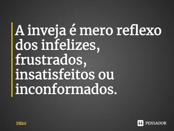 A inveja fala de um espírito confuso, de uma alma carregada de maus sentimentos, de gente mal amada, infeliz, sem foco, sem rumo e sem fé.