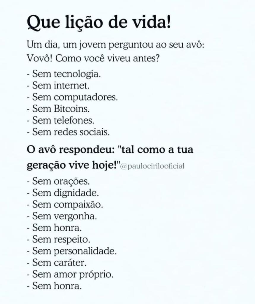 Não podemos esquecer que existem coisas que não caem de moda. Mesmo que restem só dois seres humanos sobre a terra, respeito, educação, gentileza, paciência, tolerância, boa vontade, acolhimento, cautela, benevolência, civilidade, disponibilidade, dignidade e empatia não poderão faltar. A falta do básico para convivermos nos desumaniza, torna a vida difícil de ser vivida e suportada.