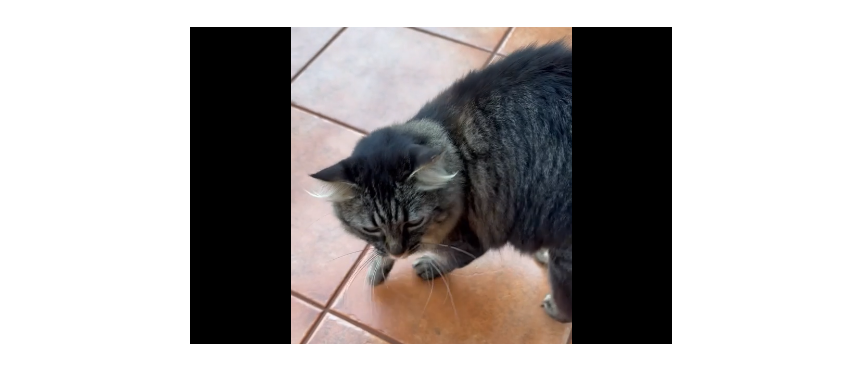 Então, pensamos em um meio para conquistá-la. Começamos deixando comida e água todos os dias. Não demorou e ela aceitou vir na varanda se servir. Era só abrir a porta que ela fugia em disparada.
