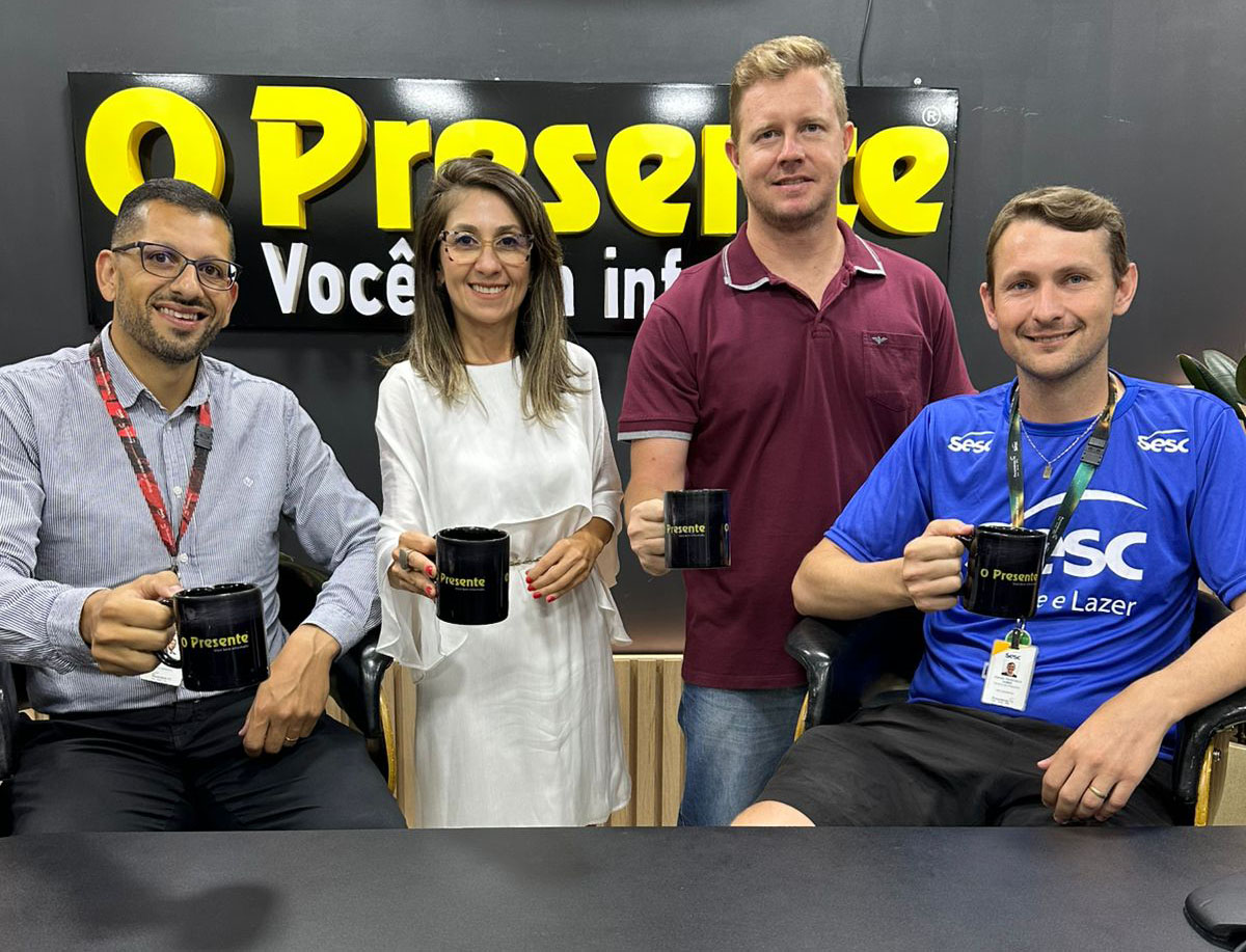 O Arena O Presente desta semana teve a participação do gerente do Sesc Marechal, Fernando Ferreira, e do técnico de atividades Rafael Huber. Durante participação no programa, eles falaram aos jornalistas Ana Paula Wilmsen e Gustavo da Cunha sobre a Copa Sesc de Futsal e muitas novidades previstas para 2025. Clique aqui e assista à entrevista (Foto: Ellen Noskoski/OP)