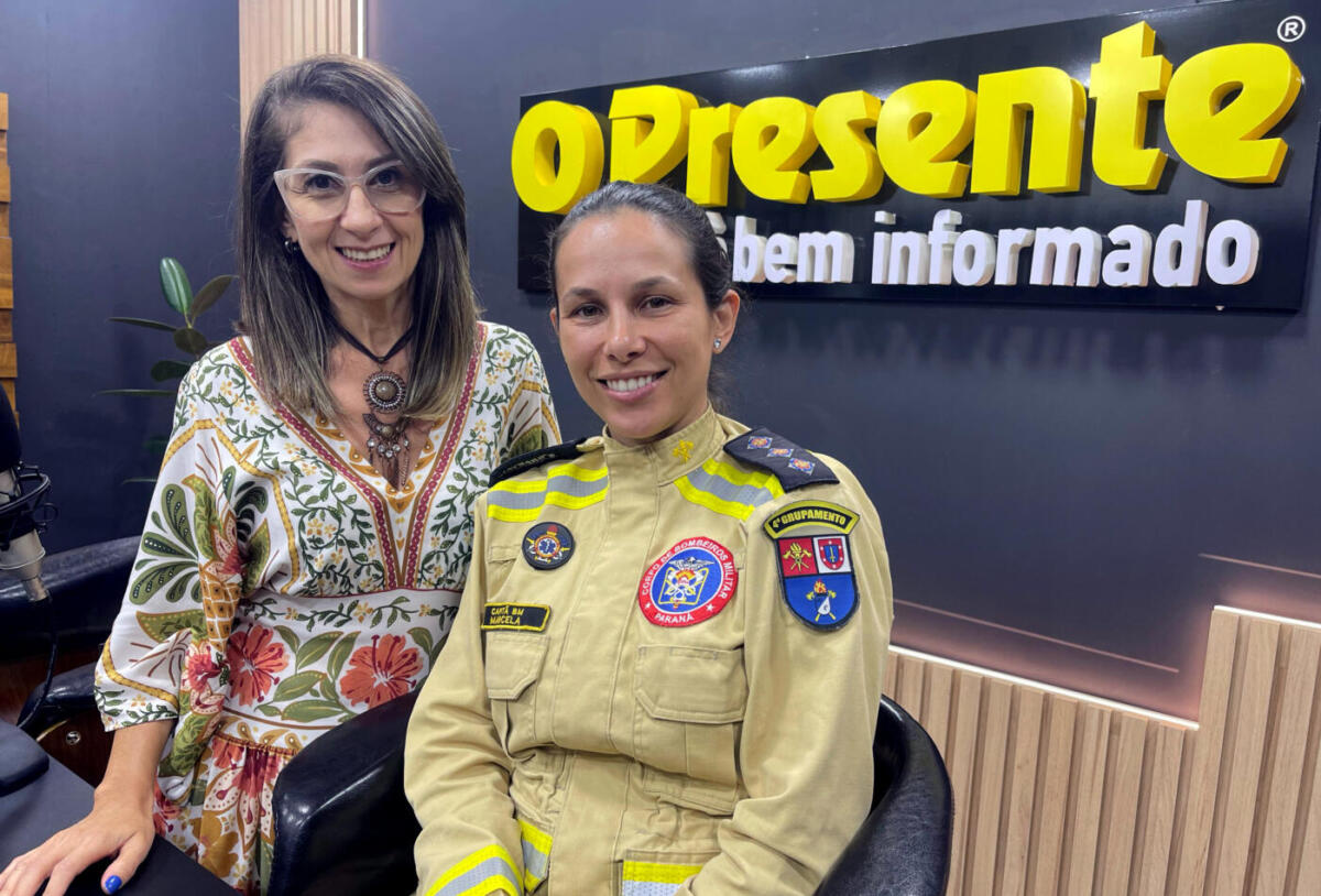 A comandante do Corpo de Bombeiros de Marechal Cândido Rondon, capitã Marcela Schwendler, com a jornalista Ana Paula Wilmsen. Marcela esteve no O Presente para um bate-papo sobre as ações da corporação (Foto: Ueslei Stankovicz/OP)