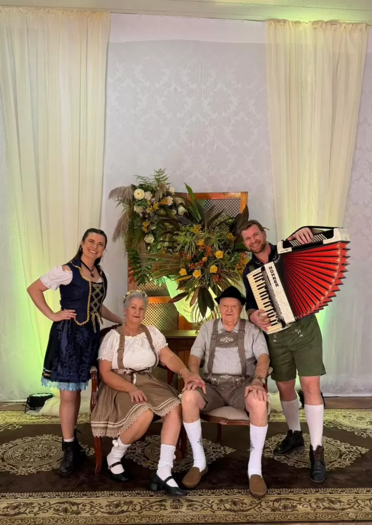 Em uma linda composição fotográfica, Estela Rheinheimer Pravato, que apaga velinhas hoje (13). Felicidades! (Foto: Arquivo pessoal)O arquiteto Charles Hanusch aniversaria hoje (13). Parabéns! (Foto: Arquivo pessoal)Fabricia Scheid Neitzke estreia idade nova hoje (13). Tim-tim! (Foto: Arquivo pessoal)A querida Regina Zanette, que depois de morar mais de 30 anos na Itália fixou residência em Curitiba. Ela estreia idade nova hoje (13). Parabéns! (Foto: Arquivo pessoal)O empresário Fernando Zanetti aniversaria hoje (13). Felicidades! (Foto: Arquivo pessoal)Ju Schwaab apaga velinhas amanhã (14). Tim-tim! (Foto: Arquivo pessoal)Pedro Henrique Tomasi estreia idade nova amanhã (14). Felicidades! (Foto: Arquivo pessoal)O pioneiro rondonense Silverio Stapenhorst com a esposa Judite e os animadores da festa que marcou os 90 anos dele. A festa aconteceu no último domingo (8), no Clube Lira de Marechal Cândido Rondon, na presença de parentes e amigos (Foto: Arquivo pessoal)Marta de Bona Wild com a filha Gabriela na Festa da Uva que aconteceu em Caxias do Sul (Foto: Arquivo pessoal)O Arena O Presente desta semana traz um bate-papo especial com a galera do handebol em cadeira de rodas. Os jornalistas Ana Paula Wilmsen e Gustavo da Cunha receberam o técnico da Assindamar, Lucas Javã, e o atleta Nei Dias, jogador da Seleção Brasileira e campeão mundial da modalidade, para falar da 4ª Copa Sul de Handebol em Cadeira de Rodas, que será realizada neste fim de semana em Marechal Cândido Rondon. Clique aqui e assista (Foto: Ellen Noskoski/OP)