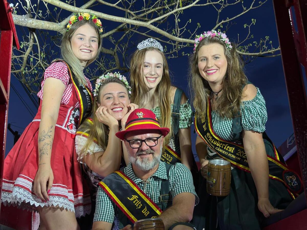A Rainha e as Princesas da Oktoberfest 2023, Májori Regina Klein, Bárbara Hofstaetter e Bruna Gabriela Becker Vogt, com o casal Fritz e Frida, Davi Zimmermann e Joise. Eles estão animando à altura as pré-Oktoberfests em Marechal Cândido Rondon. E sexta-feira (20) tem mais: será na Avenida Rio Grande do Sul, próximo à Rua Sete de Setembro, a partir das 17 horas (Foto: Divulgação)Os empresários Orlando Sturm e Walmor Nied com Harto Viteck durante almoço festivo da Confraria Boca Maldita e Clube Os Milionários, no último sábado (14), quando Harto foi homenageado pelos relevantes serviços prestados à comunidade de Marechal Cândido Rondon e também pela contribuição notável nas questões históricas e culturais do município (Foto: Rafael Sturm)Todo charme de Marlise Sulzbach Ricardi, que apaga velinhas hoje (17). Feliz aniversário! (Foto: Arquivo pessoal)O empresário Jorge Luis Basei aniversaria hoje (17). Felicidades! (Foto: Arquivo pessoal)Toda simpatia do casal Christian Netzel e Luana Pedrollo com a filha. Ele aniversaria hoje (17). Parabéns! (Foto: Arquivo pessoal)Toda simpatia do casal Mariana Marcon Weber e Uesley Nogueira com os filhos. Mariana aniversaria hoje (17). Felicidades! (Foto: Arquivo pessoal)