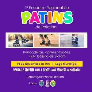 A Secretaria de Esportes do município de Palotina, juntamente com o grupo “Galera do Patins” e empresas parceiras, promove o 1º Encontro Regional de Patins de Palotina no domingo (14), às 15 horas, no Lago Municipal. O evento será aberto ao público e contará com a participação de patinadores de municípios vizinhos.