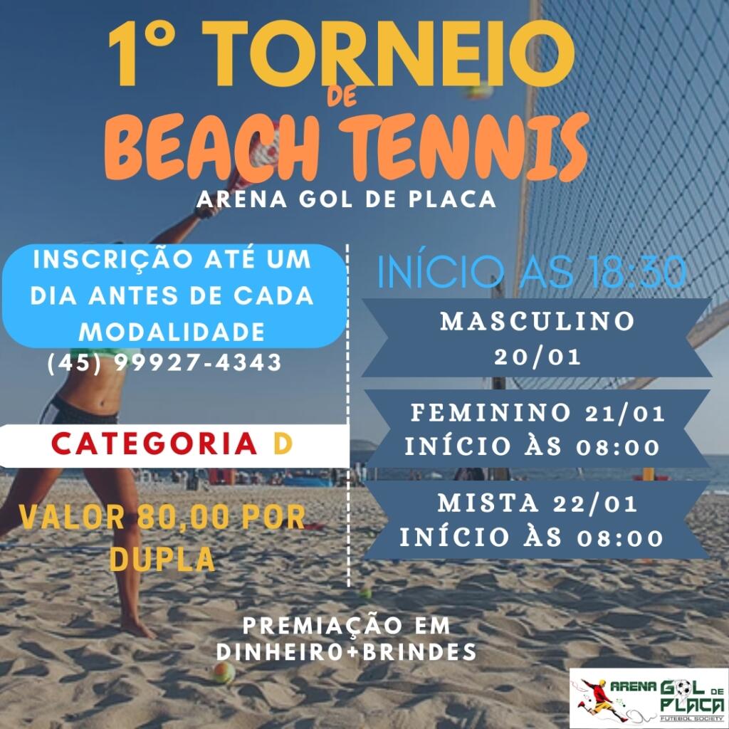 Está tudo preparado para a realização do 1º Torneio Beach Tennis Arena Gol de Placa, que acontece a partir desta sexta-feira (20) até domingo (22), no mais completo complexo esportivo particular de Marechal Cândido Rondon.