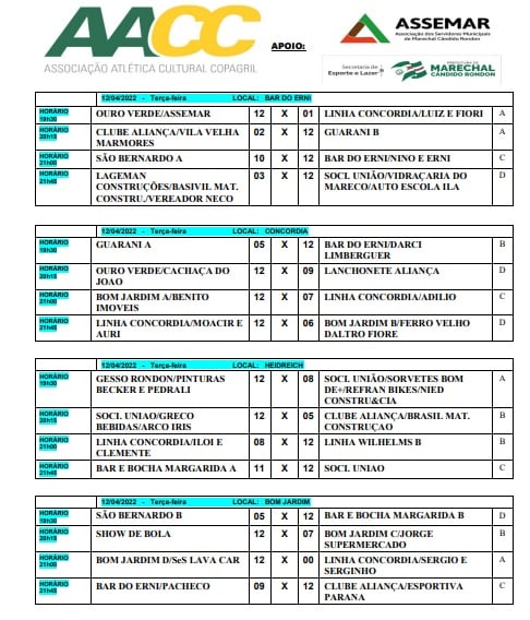 Iniciada na terça-feira (12), a 2ª Copa AACC de Bocha em Duplas em Cancha de Areia prossegue com disputas na noite desta quinta-feira (14) em Marechal Cândido Rondon.
